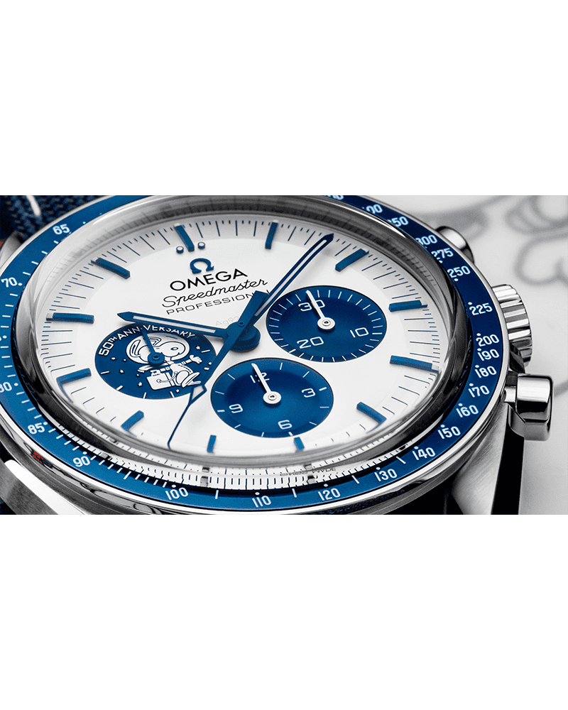 Our attention to detail is evident in everything we do. The silver dial of our 50th anniversary “Silver Snoopy Award” watch is a shining example. With finely curved baton hands, angular hour markers and an embossed Snoopy counter at 9 o’clock, we’ve accomplished our mission of taking every component to the highest level of quality. This is our rigorous approach. This is OMEG precision.