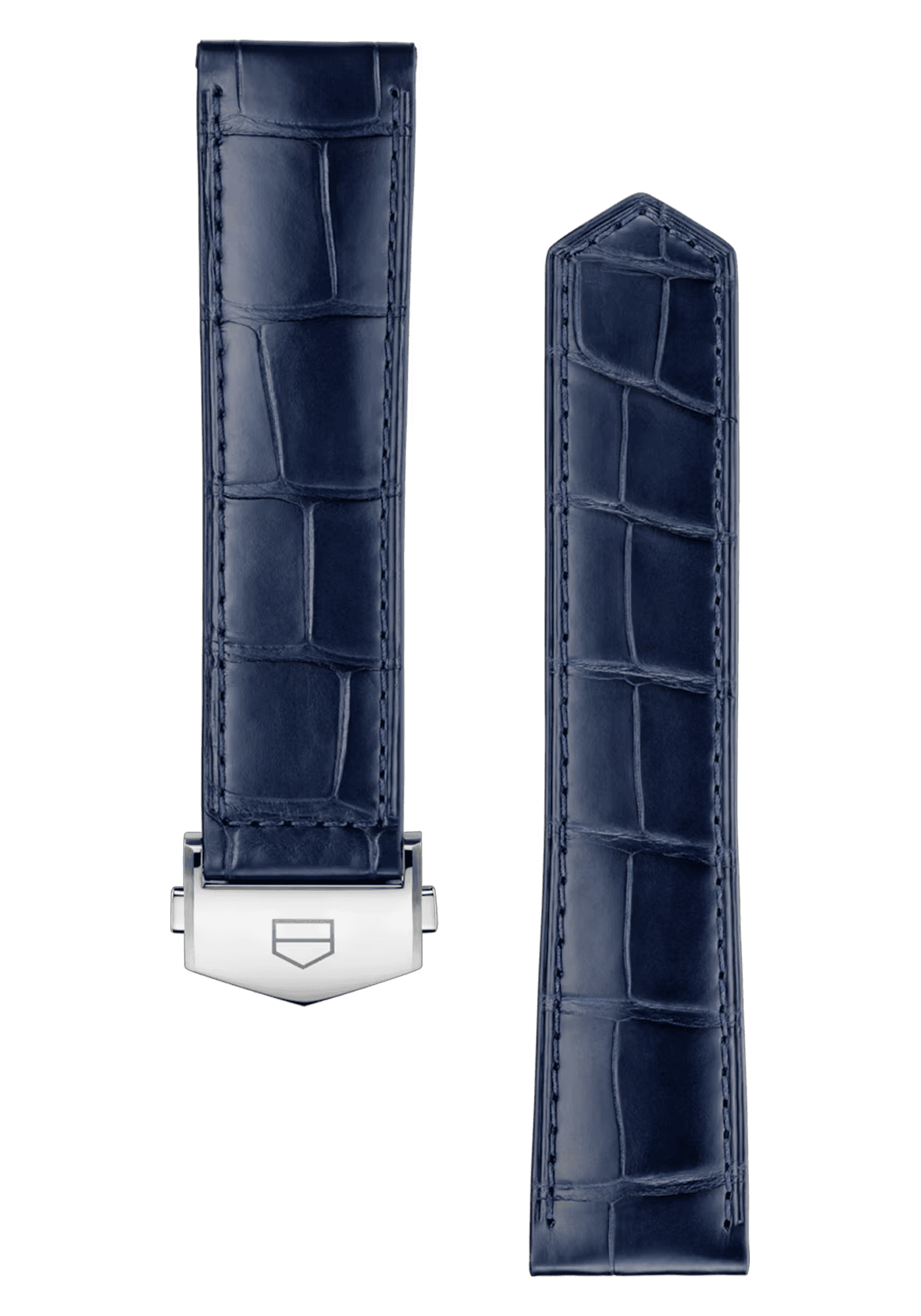 Erleben Sie den zeitlosen Charme der TAG Heuer Carrera mit diesem blauen Alligatorlederarmband, das Selbstbewusstsein und urbanen Stil ausstrahlt. Zusammen mit der Faltschließe aus Stahl und präzisen Ton-in-Ton-Nähten setzt es ein klares Statement klassischer Eleganz.