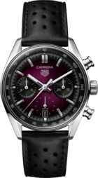 Elevate your style with the TAG Heuer Carrera Chronograph, where cutting-edge design meets vibrant color. Featuring a striking smokey purple sunray brushed dial, this watch blends precision with elegance, creating a bold, unisex timepiece ready for any occasion.