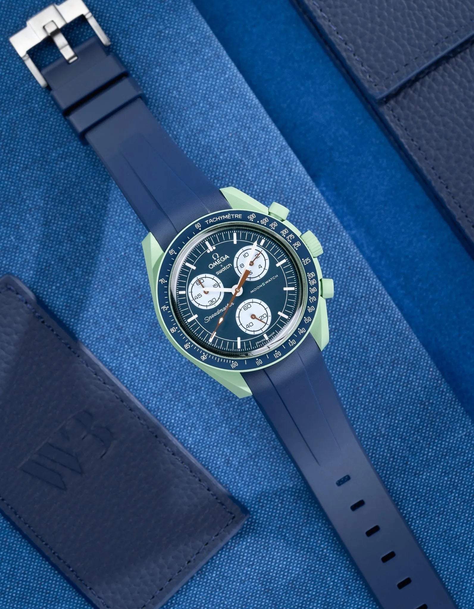 Upgrade your timepiece with this high-quality curved rubber strap in an elegant blue. Designed for both comfort and style, it effortlessly combines durability with a sleek appearance. Perfect for adding a touch of sophistication to any watch.