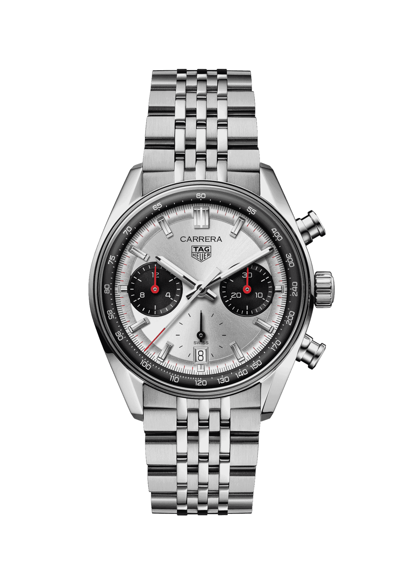 Heritage takes on a contemporary edge in this 39mm TAG Heuer Carrera chronograph, encapsulating the daring spirit of the collection's 60th anniversary. The dial, a tribute to the iconic "DATO" design, distills its distinctive style with panache.
